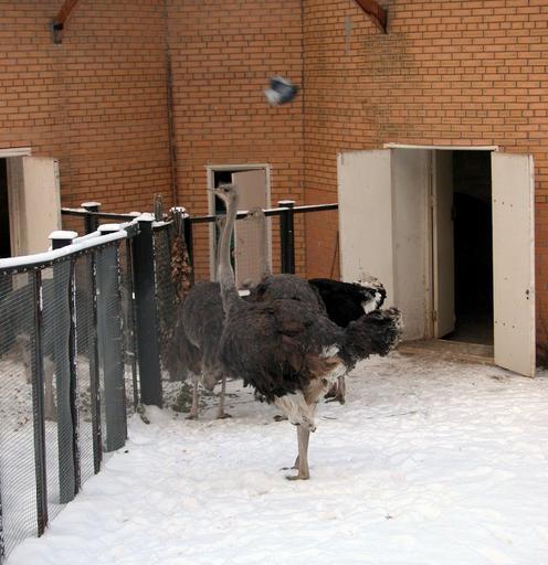 | Keywords: Krasnoyarsk Ostrich3.jpg thumb right another picture 26 12 2005 Ostriches in a zoo in Krasnoyarsk city Siberia on 26th december 2005 Air temperature is -19°C In the left there is a special house for them opened to enter but they stay outside Ст аусы в зоопа ке го ода К асноя ска Сиби ь 26 декаб я 2005 Темпе ату а воздуха -19°C Слева находится их ку ятник куда они могут уйти но они остаются на улице Struzzi nello zoo della città di Krasnojarsk Siberia il 26 dicembre 2005 All'aperto era 19°C A sinistra c'è il loro pollaio ma non volevano entrare si sentivano normale all'aperto Struisvogels in de dierentuin van Krasnojarsk Siberië Het is min 19 buiten Links van hen staat er een hok open maar ze blijven buiten 2006-06-20 own assumed Siberiano Struthio camelus in zoos Royev Ruchey Zoo in Krasnoyarsk |