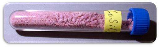 Keywords: Křemičitan kobaltnatý.PNG Křemičitan kobaltnatý - CoSiO3 Vlastní sbírka 2007-06-09 Ondřej Mangl Není nutno Cobalt compounds Metasilicates Samples of chemical compounds