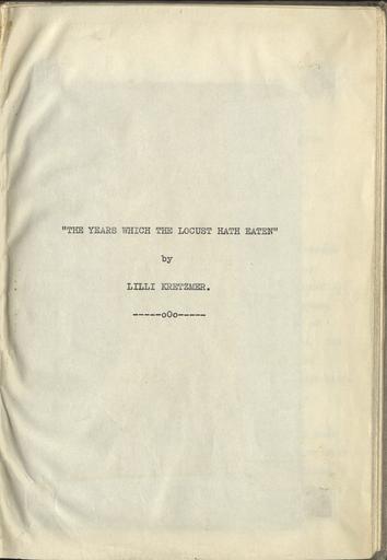 | Keywords: monochrome Description:  "The Years Which the Locust Hath Eaten" is a bound typescript, with a brief handwritten addendum. The narrative covers approximately the period from 1936 to 1940, and describes the events and thoughts leading to the Kretzmer family's decision to leave Nazi Germany, their stay in England, and their arrival in the United States. The volume includes two postcards and 13 photographs, most of buildings and landscapes in places that the Kretzmers visited or in which they stayed.  Repository: Schlesinger Library on the History of Women in America.  Collection: Lilli Cohen Kretzmer Papers  Call Number: MC 379  Catalog Record: id.lib.harvard.edu/aleph/001366809/catalog   Questions? Ask a Schlesinger Librarian  Description:  "The Years Which the Locust Hath Eaten" is a bound typescript, with a brief handwritten addendum. The narrative covers approximately the period from 1936 to 1940, and describes the events and thoughts leading to the Kretzmer family's decision to leave Nazi Germany, their stay in England, and their arrival in the United States. The volume includes two postcards and 13 photographs, most of buildings and landscapes in places that the Kretzmers visited or in which they stayed.  Repository: Schlesinger Library on the History of Women in America.  Collection: Lilli Cohen Kretzmer Papers  Call Number: MC 379  Catalog Record: id.lib.harvard.edu/aleph/001366809/catalog   Questions? Ask a Schlesinger Librarian |