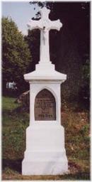 Keywords: Kreuzheddert.jpg Das Wegkreuz an der Ortsausfahrt nach Heddert An der Ortsausfahrt nach Heddert steht auf der linken Straßenseite ein hohes Steinkreuz Auf dem Mittelteil das auf zwei Unterblöcken steht die durch schmale an den Seiten geschwungene Steinplatten abgegrenzt sind steht innerhalb eines Spizbogens in dessen Winkeln links und rechts Blattverzierungen angebracht sind die Inschrift Psalm 41-13 Gelobt sei Jesus Christus - Ich der Herr dein Gott bin es der deine Hand faßt und zu dir spricht Fürchte dich nicht ich helfe dir - Familie Wilh Theis à ber dem Mittelteil sind auf einer schmalen nach außen schwungvoll gebogenen Platte Blattverzierungen in einer Reihe ausgehauen Darüber erhebt sich auf einem dachartigen Stein das hohe Abschlusskreuz dessen Balkenenden sich dreigliederig auflösen das Kreuz wurde 1919 von den Familien Michel Theis- Becker und Steinbach- Lauer zum Dank der glücklichen Heimkehr aus dem Ersten Weltkrieg aufgestellt Im zweiten Weltkrieg wurde es zerstört Im Jahre 1950 ließen Willibrod und Maria Theis geb Körtels das Kreuz aus Dankbarkeit über die Geburt ihres dritten Kindes Klara das Maria Theis im Alter von 43 Jahren gebar wieder errichten Ihnen war 2 Jahre zuvor ein Junge wenige Stunden nach der Geburt gestorben Die Marmorplatte mit der Inschrift wurde in Koblenz angefertigt und kostete damals 50 DM Bernd Hinz Hamm 2006-10-19 Bernd Hinz Hamm PD-release Original upload log de wikipedia Nachcommonsverschieber CommonsHelper de wikipedia Kreuzheddert jpg 2006-10-19 18 42 Hinz666 148×293× 19540 bytes <nowiki>Fotograf Hinz</nowiki> Crucifixes Hinzenburg Psalm 41 Inscriptions referencing Psalms 040