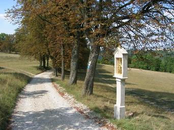 Keywords: Kreuzweg Frauenberg (Eichstätt) -w0405.jpg Frauenbergkapelle 14 Bildstöcke ehemals mit Gusseisenreliefs 1856; in ab 1875 angepflanzter Kastanienallee own WaldiWuff 2012-08-15 Kreuzweg Frauenberg Eichstätt Cc-zero