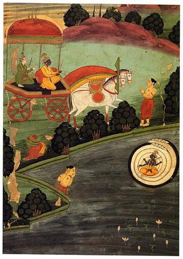 Keywords: Krishna subdues Kaliya Naag, Bhagavata Purana, illustrated 18th century manuscript.jpg en Krishna subdues Kaliya Naag Bhagavata Purana illustrated 18th century manuscript late Mogul style miniature from the Hindi version of the text India Library of Congress http //www loc gov/rr/asian/guide2007/guide-homer html anonymous century 18 PD-India Paintings of Krishna Bhagavata Purana 18th-century Mughal miniatures Illuminated manuscripts in the Library of Congress PD-Art This is the scene from the episode in Bhagavata Purana when Krishna leaves for Mathura with Akrura on the way Akrura stops to quench his thirst in Yamuna where he is bewildered to see Krishna resting on Sheshnaga and at the same time sitting on the chariot see Bhagavata Purana Canto 10 chapter 40 Shrivatsa Goswami shrivatsa bsnl in Akrura |