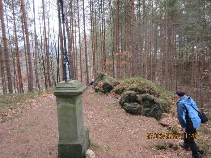 Keywords: Kříž na vrcholu mařenické Kalvárie.JPG cs Na vrcholu kopce Kalvárie v Mařenicích je kříž a několik postav vyrytých do kamenů 2016-03-23 11 40 48 own Zákupák other versions cc-zero Kalvárie Mařenice