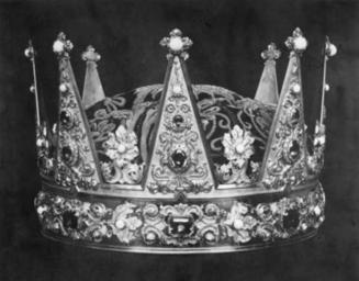 Keywords: Kronprinsens krone.jpg no De norske kronregaliene Kronprinsens krone laget av gullsmed H C Øyseth 1846 Christiania Etter tegning av Flintoe Fotografi av O Væring Fra Norsk Folkemuseum NF NF 00607-3117 kongeregalier-kronprinsens-krone-laget-av Creator Olaf Martin Peder Væring PD-old-100 Crowns of Norway Photographs by Olaf Martin Peder Væring |