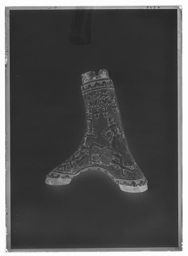 | Keywords: Kruthorn - Livrustkammaren - 43273-negative.tif Thisbe Pyramus plain text Kruthorn av hjorthorn baksidan brun och obehandlad De nedre ändarna tillslutna med stålbottnar raka sargar med kantlinje den större med en skruv På hornets sidor två ringskruvar på vardera sidan <br/><br/>På hornets framsida en snidad dramatisk scen Pyramus och Thisbe - en liggande man med spetsen av en dolk i bröstet till h en stående dam som stöter en dolk i sitt bröst båda är klädda i dräkter från senrenässansen mannen i pluderhosor och strumpor hög styv krage och kort mantel kvinnan i klänning med puffade ärmar likaså med hög styv krage I v hörn ett lejon Golv med fyrkantiga plattor i bakgrunden en murad brunn dit vattnet rinner ur ett odjursgap Upptill kraftiga växtslingor med stora blommor Upptill och nedtill bård med akantus och ett rutskrafferat fält <br/><br/>Krutmått av stål med inre och yttre slutning Pip l 68 mm med horisontella linjer liksom på hävarmen Inre slutningens vertikala ventilarm är profilerad V-fjäder på locket original caption kruthorn - LRK 2981 end other date century 16 deer antler - steel g 455 size mm 182 167 LRK Livrustkammarens basutställning 1978 Rustkammaren på Läckö 2007 Trofast - hov och tass i kunglig tjänst 2010-2011 Livrustkammaren Trogna vänner - Kungliga hästar och hundar 2011-2012 Museiverket/Finlands nationalmuseum place of origin original filename LN_B01825_004705 39582 inventory number LRK 2981 43273 CC0 Kruthorn - Livrustkammaren - 43273 tif |