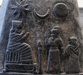 MAKE A MEME View Large Image Kudurru Melishipak Louvre Sb23 n02.jpg Kudurru stele of King Melishipak I 1186 “1172 BC the king presents his daughter to the goddess Nannaya The crescent moon represents the god Sin the sun the Shamash and the star the goddess Ishtar ...