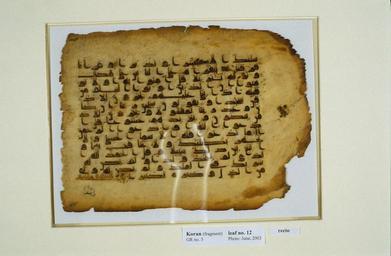Keywords: Kufi - D I style.jpg en Verses 105-111 of the 17th chapter of the Qur'an entitled Surat al-Isra' The Night Journey or Surat Bani Isra'il The Children of Israel The text's Kufi script is related to the D I style typical of horizontal Qur'ans produced during the 9th century LOC-calligraphy ascs 290 Unknown Calligrapher century 9 PD-Art Kufic style Qur'an manuscripts 9th century Library of Congress Arabic Persian and Ottoman calligraphy collection