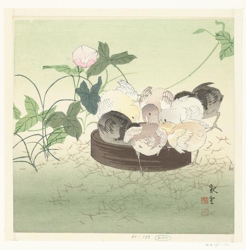 Keywords: Kuikens-Rijksmuseum RP-P-1961-151.jpeg accession number RP-P-1961-151 Anonymous credit line GWToolset Rijksmuseum nl Kuikens etend uit een bruine ronde schaal; op de achtergrond een winde met een roze bloem Label Line possibly Jakuun 1900 - 1910 kleurenhoutsnede; lijnblok in zwart met kleurblokken Collection prenten; Japan collectie blad Height mm 244 blad Width mm 250 exhibition history paper object history Acquisition 1961 object type PD-US PD-old Data and photography rights All data and all images made available through the API are either in the public domain or are subject to a CC0 license https //www rijksmuseum nl/en/api/terms-and-conditions-of-use cc-zero place of creation Japan http //www rijksmuseum nl/collectie/RP-P-1961-151 http //hdl handle net/10934/RM0001 COLLECT 47564 handle Kuikens Uploaded with GWToolset Rijksmuseum RP-P-1961-151 http //www rijksmuseum nl/media/assets/RP-P-1961-151 Images uploaded by Fæ Japanese 20th-century prints in the Rijksmuseum Amsterdam Images from the Rijksmuseum