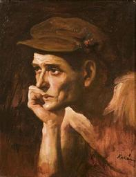 | Keywords: Kukán Man Wearing a Cap.jpg Artwork Creator Géza Kukán Oil on canvas Size cm 40 50 Private collection object history credit line bottom right Kukán accession number http //axioart com/ axioart com http //axioart com/index php set_lang en op live_item id 332658 Info http //axioart com/images/live_images/original/1950/591 jpg Pic PD-old-70 Géza Kukán |