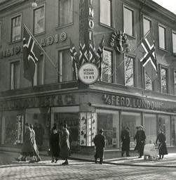 | Keywords: vårslipp vårslipp 2012 vårslipp2012 kulturmønstringer norsk uke norskuke andre verdenskrig andreverdenskrig 2. verdenskrig 2verdenskrig nordmenn i sverige under krigen nordmennisverigeunderkrigen outdoor I tiden 11. - 18. februar 1945 arrangertes i Gøteborg en norsk uke med utstillinger, foredrag og kunstnerisk underholdning. Bildet viser: norske flagg pryder bygningene i Gøteborg. RA/PA-1209/Uc/72/2/S5618 I tiden 11. - 18. februar 1945 arrangertes i Gøteborg en norsk uke med utstillinger, foredrag og kunstnerisk underholdning. Bildet viser: norske flagg pryder bygningene i Gøteborg. RA/PA-1209/Uc/72/2/S5618 |