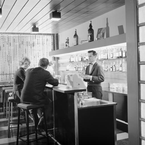 Keywords: blackandwhite monochrome counter table indoor food coffee beverage black and white Asiakkaita Osuusliike Mäki-Matin liikekeskuksen ravintolan baaritiskillä. Alkuperäinen kuvateksti: "Ravintolan baarista on tullut suosittu paikka. Kaikki kalusteet ovat OTKn Puu Oyn valmistamia. Hotellin kalusteet on tehry Lahdessa ja tavaratalon Hämeenlinnassa." (Kuluttaja 30/1961, s. 7) photographer unknown / kuvaaja tuntematon 1961 Jyväskylä, Keski-Suomi, Finland / Suomi Finnish Museum of Photography / Suomen valokuvataiteen museo Asiakkaita Osuusliike Mäki-Matin liikekeskuksen ravintolan baaritiskillä. Alkuperäinen kuvateksti: "Ravintolan baarista on tullut suosittu paikka. Kaikki kalusteet ovat OTKn Puu Oyn valmistamia. Hotellin kalusteet on tehry Lahdessa ja tavaratalon Hämeenlinnassa." (Kuluttaja 30/1961, s. 7) photographer unknown / kuvaaja tuntematon 1961 Jyväskylä, Keski-Suomi, Finland / Suomi Finnish Museum of Photography / Suomen valokuvataiteen museo