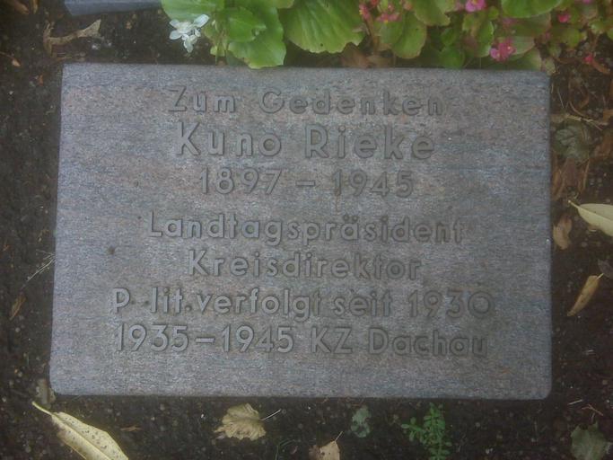Keywords: Kuno Rieke.jpg de Politiker Braunschweig gestorben im KZ Dachau own Frechdaxs 2009-09-16 Men 1945 deaths 1897 births Sozialdemokratische Partei Deutschlands Katholischer Friedhof Braunschweig People of Braunschweig