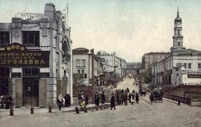 | Keywords: Kupechesky spusk postcard.jpg  Kupechesky or Paschenkovsky Spusk in Kharkov Russian Empire Postcard ru Пащенковский Купеческий спуск Подъём от Клочковской на Униве ситетскую го ку Слева пассаж Пащенко  аз ушенный во в емя войны - на его месте сейчас те  асный скве Пешеходный металлический мост пе еб ошенный на фото над спуском уцелел; после войны его пе енесли в Го одской сад имени Шевченко В настоящий момент он пе еб ошен че ез ов аг пе ед зоопа ком A reproduction of post cards dated early 20th century scan for original paper postcard //  еп одукция почтовой ка точки начала XX века скан бумажной отк ытки 1900th Russian Empire Post; Unknown; на отк ытке не указан PD-old PD-RusEmpire Postcards of Kharkiv Sobornyi Descent Kupechesky Bridge Unidentified year in Kharkiv |