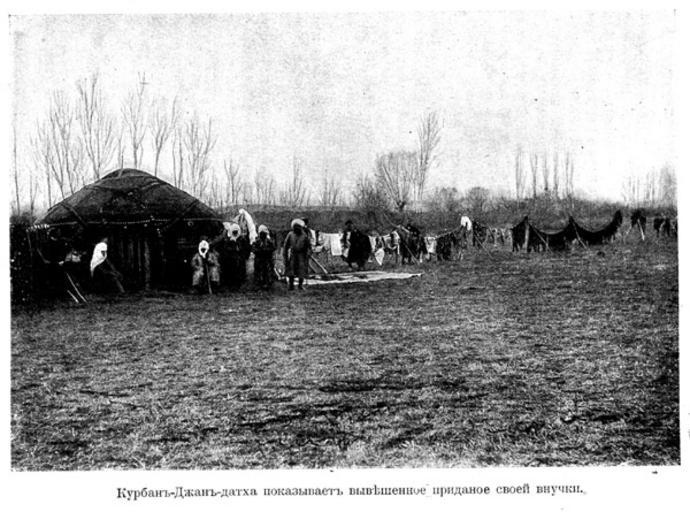 | Keywords: Kurmanjan3.JPG en Photo Kurmandjan Datka demonstrating hung out on the street dowry of her granddaughter ru Фотог афия Ку манджан Датки демонст и ующей вывешенное на улице п иданое своей внучки Ювачёв И П Ку бан-Джа-Датха ка а-ки гизская ца ица Алая // Исто ический вестник 12 1907 Восточная лите ату а Author Конец XIX века Kyrgyz people PD-old Istorichesky Vestnik |