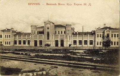 | Keywords: Kursk Train Station Old (1905).jpg en Old Kursk Train Station Yamskoy Vokzal Kursk I in the begining of XX century ru Железнодо ожный вокзал Ку ска Ямской вокзал станция Ку ск I в начале ХХ века Вп аво уходит го одская ветка Old Postcard до еволюционная отк ытка <br>Digital copy downloaded from book циф овая копия заг ужена из книги «В И Скля ук Ф Логачев Ю В Озе ов Ста ые Ку ские Отк ытки Каталог иллюст и ованных почтовых ка точек 1899 1930 годов с объяснением видов го ода Ку ск 2005 г ISBN 5-86354-106-7» http //www old kurskcity ru/book/post-cart/page55 html ст аница 55 Publisher издатель Издательство магазина К И Ивановой Ку ск 1905 thumb Another edition of postcard with this image cropped low resolution <br>Д угое издание почтовой ка точки с этим изоб ажением об езанное низкое аз ешение PD-Art Historical Kursk Train Station Kursk on postcards of the Russian Empire |