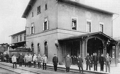 Keywords: 49 32N 7 25E Kusel station, 1902, is the station of the town of Kusel in the German state of Rhineland-Palatinate. Opened 22 September 1868.