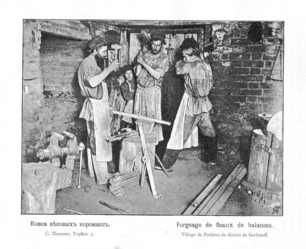 | Keywords: Kustari 007 Kovka vesovih koromisel.jpg en Handicraft Industry and Trades of Nizhegorodskaja gubernija Pavlovo XIX c ru Куста ные п омыслы и емёсла ижего одской губе нии Ковка весовых ко омысел Село Павлово Го батовского уезда 1896 год Скани ован из книги ижего одская губе ния по исследованиям губе нского земства Выпуск II Куста ные п омыслы ижего одской губе нии / сост А Плотников СПб 1896 еизвестный фотог аф конца XIX века 1896 PD-old Handicraft Industry of Nizhny Novgorod province Pavlovo Nizhny Novgorod Oblast |
