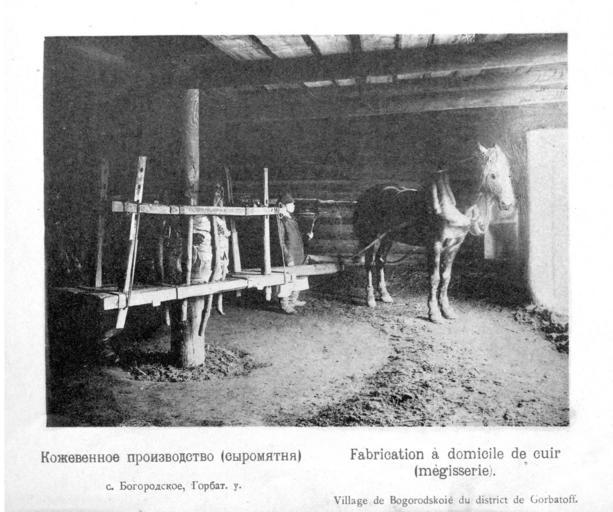 | Keywords: Kustari 023 Kozhevennoe proizsvodstvo (syromjatnja).jpg en Handicraft Industry and Trades of Nizhegorodskaja gubernija Bogorodsk XIX c ru Куста ные п омыслы и емёсла ижего одской губе нии Кожевенное п оизводство сы омятня Село Бого одское Го батовского уезда 1896 год Скани ован из книги ижего одская губе ния по исследованиям губе нского земства Выпуск II Куста ные п омыслы ижего одской губе нии / сост А Плотников СПб 1896 еизвестный фотог аф конца XIX века 1896 PD-old Handicraft Industry of Nizhny Novgorod province |