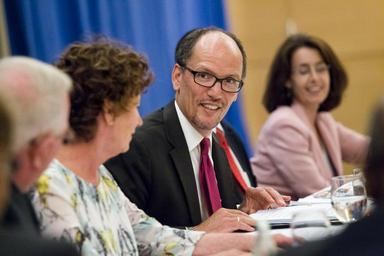 Keywords: L-14-06-04-C.320 (14352406274).jpg 4 June 2014 -Washington DC - Vice President of the United States Joe Biden and U S Secretary of Labor Thomas Perez participated in a Third Way roundtable and listening session to discuss skills and workforce development Brief opening remarks were delivered by Jon Cowan President of Third Way Secretary Perez then delivered remarks and then introduced Vice President Biden The audience was allowed to ask questions at the end which concluded the first session Secretary Perez started session two joined by Nancy Hale Sr VP of Third Way who expanded the discussion from the first session The roundtable included Byron Auguste senior partner at McKinsey Company in Washington DC; Edward Gordon Author and Consultant Imperial Consulting Corporation; Rufus Glasper Chancellor Maricopa Community Colleges; Deborah Shepherd President Lake Area Technical Institute; Steven L VanAusdle President Walla Walla Community College; Barbara Veazey President and CEO West Kentucky Community and Technical College; Doris Gonzalez Director of Corporate Citizenship Corporate Affairs IBM; Shaila Ittycheria Co-Founder Enstitute; Earl A Buford President and CEO Wisconsin Regional Training Partnership/BIG STEP Milwaukee WI ; Maureen Conway PICTURED RIGHT Executive Director Aspen Institute Workforce Strategies Initiative The Aspen Institute; Patrick Cushing CEO Co-Founder WorkHands; William Hite General President United Association of the Journeymen and Apprentices of the Plumbing and Pipe Fitting Industry; Michael I Callanan Executive Director National Joint Apprenticeship and Training Committee for the Electrical Industry NJATC ; Matt Bennett Senior Vice President for Public Affairs Third Way; Ashwin Bharath Pushpanayagam Chief Operating Officer Multivision; Gabe Horwitz Director of the Economic Program Third Way; Jim Kessler Senior Vice President for Policy Third Way and Karen Sitnick Director Workforce Investment Board of Baltimore Official Department of Labor Photograph This official Department of Labor photograph is being made available only for publication by news organizations and/or for personal use printing by the subject s of the photograph The photograph may not be manipulated in any way and may not be used in commercial or political materials advertisements emails products and/or promotions that in any way suggest approval or endorsement of the Secretary or the Department of Labor Photo Credit Department of Labor https //www flickr com/photos/usdol/14352406274/ L-14-06-04-C 320 2014-06-04 15 31 https //www flickr com/people/52862363 N07 US Department of Labor PD-USGov US Department of Labor https //flickr com/photos/52862363 N07/14352406274 2016-09-06 06 35 14 United States Government Work Uncategorized 2016 December 21 |