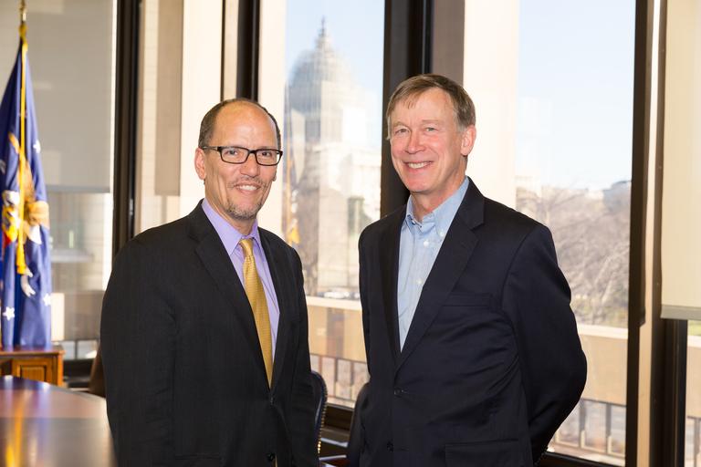 | Keywords: L-15-01-05-B-001 (16182328756).jpg 5th January 2015 WASHINGTON D C - U S Department of Labor Secretary Thomas Perez meets with Governor John Hickenlooper Jr Colorado to discuss Workforce Innovation and Opportunity Act Official Department of Labor Photograph This official Department of Labor photograph is being made available only for publication by news organizations and/or for personal use printing by the subject s of the photograph The photograph may not be manipulated in any way and may not be used in commercial or political materials advertisements emails products and/or promotions that in any way suggest approval or endorsement of the Secretary or the Department of Labor Photo Credit Department of Labor Shawn T Moore https //www flickr com/photos/usdol/16182328756/ L-15-01-05-B-001 2015-01-05 15 30 https //www flickr com/people/52862363 N07 US Department of Labor 38 893055 -77 014445 source Flickr PD-USGov US Department of Labor https //flickr com/photos/52862363 N07/16182328756 2016-09-06 05 36 00 United States Government Work Uncategorized 2016 December 21 1 |