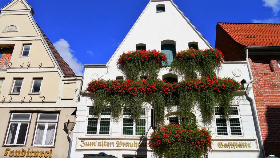 Keywords: lüneburg home architecture building housewife stadtmitte historically old house romantic flowers inn