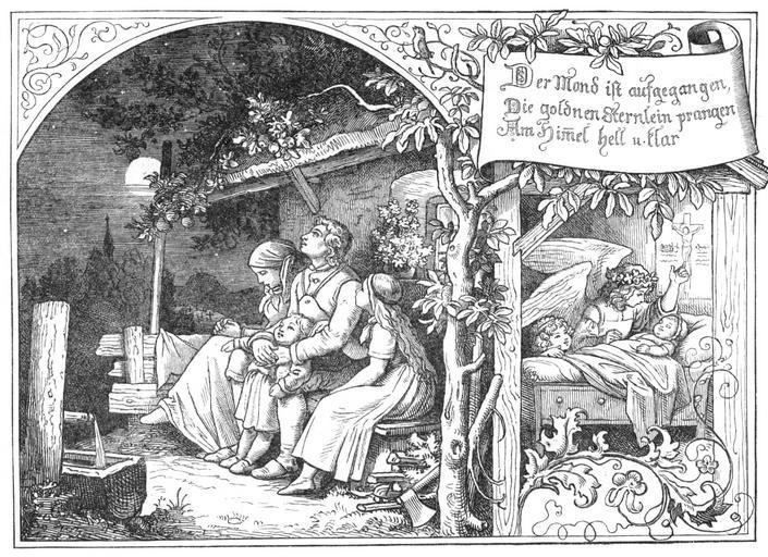| Keywords: L Richter Der Mond ist aufgegangen.jpg de Der Mond ist aufgegangen Aus žVater Unser in Bildern Ferdinand Avenarius Ludwig Richter-Gabe Eine Auslese aus den Werken des Meisters Herausgegeben vom Leipziger Lehrer-Verein Verlag von Alphons Dürr Leipzig 1905 Creator Ludwig Richter 1856 File Ludwig Richter Der Mond ist aufgegangen jpg Der Mond ist aufgegangen PD-old-100 | ||||