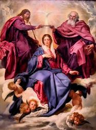 | Keywords: La coronación Virgen Velázquez lou.jpg  Artwork Q3221859 Creator Diego Velázquez La obra representa la coronación de la Virgen María madre de Jesucristo por los tres miembros de la Santísima Trinidad Ca 1635-1636 oil on canvas Size cm 134 5 178 5 Institution Museo del Prado Sala 014 https //www museodelprado es/coleccion/obra-de-arte/la-coronacion-de-la-virgen/5f39f2cc-0197-4522-aecf-1d8e3b2e4ae7 accession number P01168 Fotografía digital realizada por Pablo Alberto Salguero Quiles el Domingo 29 de febrero de 2004 12 33 06 en el Museo del Prado de Madrid España La fotografía está realizada con un tiempo de exposición un poco largo con el fin de no utilizar flash que no está permitido en el museo así como trípode por eso está un poco movida o cuanto menos no tan definida como deseaba Se retocó con programas informáticos de edición de imágenes el color con el fin de que se ganase en definición de imagen Así mismo faltan unos pocos centímetros de los márgenes principalmente debido al encuadre de la foto PD-old-100 GFDL relicense Coronation of the Virgin Velázquez |