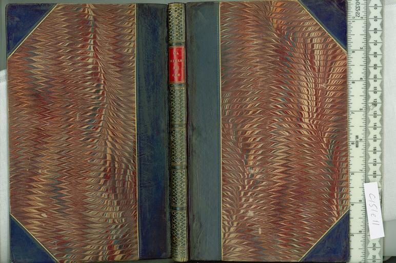 | Keywords: La fille du Cid - Upper and lower cover and spine (c151e11).jpg Style Plain covers tooled spine; Caption Upper and lower cover and spine; Colour Blue; Edge Marbled exhibition history Decorative Technique Tooled in blind Tooled in gold; Cover Material Calf half marbled paper Comb marbled endleaaves Part of the Charles Ramsden Collection of Signed Bindings Brown ribbon marker object history Text 1840; Paris; Unspecified object type Cc-zero place of creation Binding England place of discovery Unspecified British Library image http //www bl uk/catalogues/bookbindings/LargeImage aspx RecordId 020-000013899 ImageId ImageId 53135 Copyright BL La fille du Cid Uploaded with GWToolset La fille du Cid - Upper and lower cover and spine c151e11 http //www webarchive org uk/bldatasets/bindings/c151e11 jpg 19th-century bookbinding Bookbinding British Library Bookbindings |