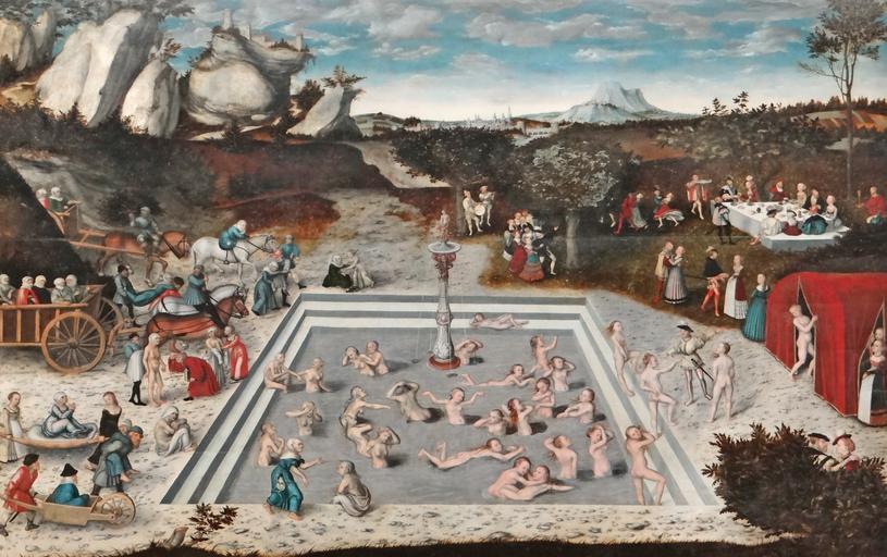 | Keywords: La Fontaine de Jouvence (Gemäldegalerie, Berlin) (11306120605).jpg Artwork Creator Lucas Cranach I fr La Fontaine de Jouvence est un bassin rempli d'eau alimenté par une fontaine ornée de Vénus et de Cupidon Le paysage rocheux et désolé situé au fond à gauche symbolise la vieillesse alors que la jeunesse est évoquée à droite par un verger et des champs cultivés Des femmes âgées arrivent par différents moyens de transport sur la gauche du bassin Un médecin examine certaines d'entre elles d'autres sont effrayées par le lieu Le bain dans la fontaine leur redonne la jeunesse A nouveau jeunes filles elles sortent de l'eau à droite et pénètrent dans des tentes où elles sont richement habillées pour immédiatement retrouver les plaisirs de la vie amour repas danse promenade Le tableau ne traite que de la jouvence des femmes en sous-entendant que ce sont elles qui redonnent la jeunesse aux hommes 1546 oil lime cm 120 6 186 1 institution Gemäldegalerie Berlin III accession number 593 02554127 http //bpkgate picturemaxx com/index php LANGUAGE DE_DE WGSESSID ce5761c0d48bbae7313bf52227298775 UURL 308e20193475eb92548a5b50aebb136b IMGID 00082721 bpk - Bildagentur search Jungbrunnen<br>http //www lucascranach org/digitalarchive php Cranach Digital Archive search FR407<br>http //www smb-digital de/eMuseumPlus service ExternalInterface module collection objectId 1750773 viewType detailView Aufstellung des Deutschen Museums im Pergamonmuseum Raum 12 Cranach-Kabinett 1930 - 1937<br>http //www spk-digital de/showDetail html id 22/bam/museum/smb/gg/00082722 22 Stiftung Preußischer Kulturbesitz<br>Hartlaub Gustav Friedrich Lukas Cranach d Ä Der Jungbrunnen 1549 Berlin 1943 http //digi ub uni-heidelberg de/diglit/hartlaub1943 online <br>Koepplin Dieter; Falk Tilman; Lukas Cranach Gemälde Zeichnungen Druckgraphik; Ausstellung im Kunstmuseum Basel 15 Juni bis 8 September 1974 http //digi ub uni-heidelberg de/diglit/koepplin1974bd1/0032 sid 0a50a1e1a43db6e53ae88a074337f92f online S 26 object history credit line exhibition history ~ lower center signature and date Friedländer Rosenberg 1978 Nr FR407 https //www flickr com/photos/dalbera/11306120605/ La Fontaine de Jouvence Gemäldegalerie Berlin ; https //www flickr com/people/72746018 N00 Jean-Pierre Dalbéra from Paris France Other versions 52 508661 13 364587 source Flickr PD-old-100-1923 cc-by-2 0 dalbera http //flickr com/photos/72746018 N00/11306120605 2014-12-09 16 29 05 cc-by-2 0 The Fountain of Youth by Lucas Cranach I 04 ImageNote 1 4 2 910 751 1597 1003 2 300px ImageNoteEnd 1 |