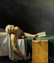 | Keywords: La mort de Marat - replica - 1793 - Chateau de Versailles.jpg Attributed to <ref name hubert /> The Death of Marat<ref name phoenix /> La mort de Marat<ref name hubert />; Marat assassiné<ref name phoenix /> ca 1793 <ref name phoenix > cite web http //www masterpiecereplayed org/downloads/20080129-pam-masterpiece-checklist pdf http //www webcitation org/5qPjS3lQ4 2010-06-11 Masterpiece Replayed Checklist Phoenix Art Museum </ref> oil on canvas <ref name phoenix /> cm 157 136 <ref name hubert > cite web http //www pagegangster com/p/1Lgv8/40/ Catalogue Page 42 Hubert Duchemin </ref> institution Versailles <ref name phoenix /><ref name hubert /> Replica of Jacques-Louis David's The Death of Marat 1793 http //www pagegangster com/p/1Lgv8/40/ Photo credits in the source C RMN / © Gérard Blot MV 5608<ref name phoenix /> PD-old-100 Other versions References references La Mort de Marat Jacques-Louis David 1793 Paintings in the Musée national du Château de Versailles Paintings after Jacques-Louis David |