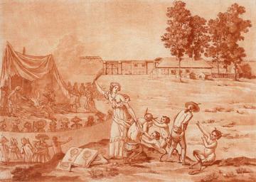 | Keywords: La physique confond l'ignorance Dedié aux souscripteurs.jpg Artwork French cartoon shows a woman Physics personified whipping the bare bottom of one man possibly Janinet while another possibly Abbé Miollan walks away pulling up his trousers In the background men are inflating a balloon with hot air from a fire which apparently caused the balloon to ignite and enraged spectators who had paid admission to witness the ascent and who hastened the destruction of the balloon by fanning the flames and pulling it to pieces The print appears to ridicule the attempt of Abbé Miollan and Janinet to ascend in a hot air balloon in Paris France Published France s n 1784 1 print etching with aquatint Institution LoC object history exhibition history credit line accession number LOC-image ppmsca 02331 PD-100 Images of Paris from the Library of Congress Hot air balloons in Paris Aircraft of the 18th century Balloon aircraft in art 1784 in Paris |