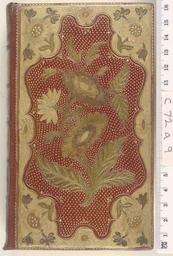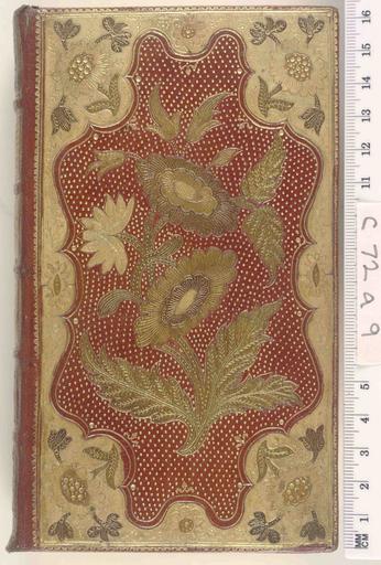 Keywords: La Sainte Bible - Upper cover (c72a9).jpg Style Floral Frame Semis background of small tools; Caption Upper cover; Colour Red; Edge Gilt exhibition history Decorative Technique Tooled in gold Onlaid Mosaic; Cover Material Goatskin includes morocco turkey etc Signed Blue silk endleaves object history Text 1739; Cologne; Unspecified object type Cc-zero place of creation Binding France place of discovery For 18c French bindings see Giles Barber The James A De Rothschild Bequest at Waddesdon Manor Printed Books Bookbindings Buckinghamshire 2013 British Library image http //www bl uk/catalogues/bookbindings/LargeImage aspx RecordId 020-000007322 ImageId ImageId 43266 Copyright BL La Sainte Bible Uploaded with GWToolset La Sainte Bible - Upper cover c72a9 http //www webarchive org uk/bldatasets/bindings/7787_4 jpg Bookbinding 18th-century bookbinding British Library Bookbindings |