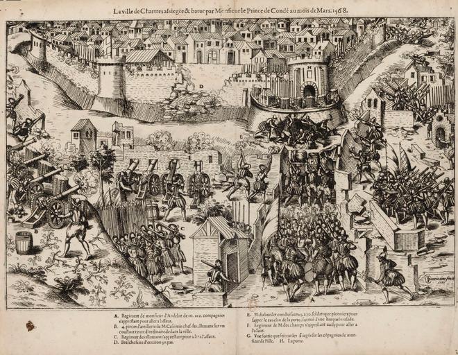 | Keywords: La ville de Chartres assiégée et battue par le Prince de Condé en 1568.png fr Estampe de 1578 représentant le siège de Chartres pendant les guerres de religion 1570 ark /12148/btv1b8400613r Perrissin graveur other versions PD-old Chartres in art Sieges in art Sieges involving France Calvinists Louis Prince of Condé 1530 “1569 Persecution of Christians | ||||