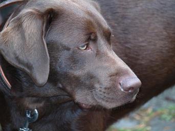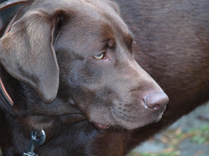 Keywords: labrador dog pet dark brown head snout