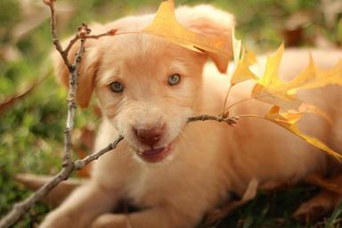 Keywords: labrador golden retriever pit puppy mix god funny cute pet domestic animals playful fall leaves