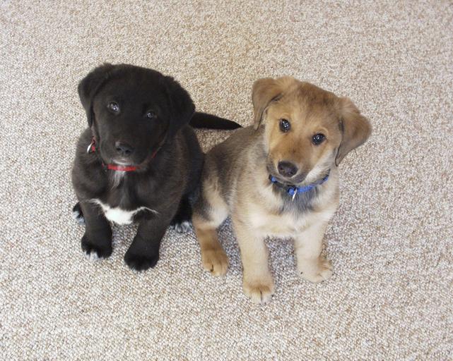 Keywords: labrador puppies dogs young animals cute pets mammals black yellow sitting