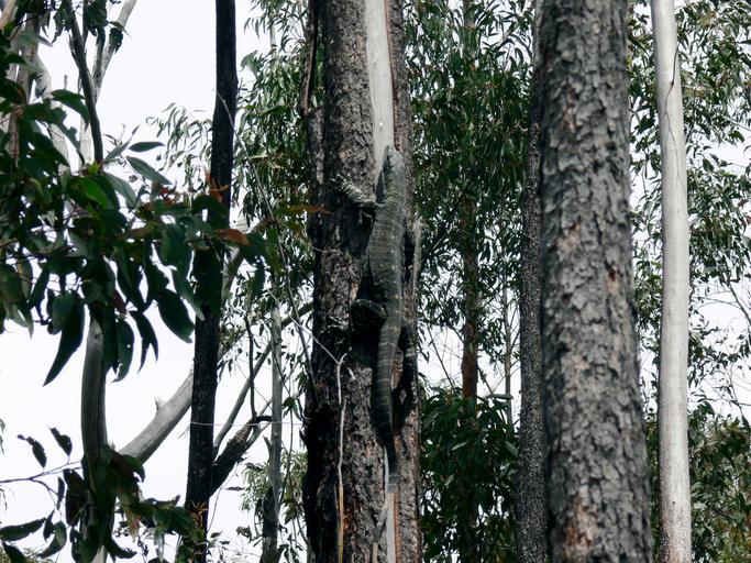 Keywords: Lace Monitor.jpg Lace monitor goanna Varanus varius climbing tree near Bellbird Creek Gippsland The reptile is over 1m in length Note how the patterned skin blends with the colour of the bark of the tree Own 2006-11-14 11 05 48 John Hayman Varanus varius |