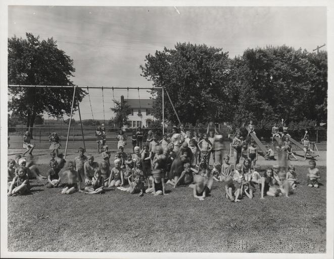 Keywords: kalamazoo public library michigan history photography lacrone park paterson street house group children playground outdoor photo border Photo taken in LaCrone Park, on W. Paterson Street. Group photograph of many unidentified children posting on and around playground equipment. Two-story house on Paterson Street in background. KPL catalogue number P-834. Photo taken in LaCrone Park, on W. Paterson Street. Group photograph of many unidentified children posting on and around playground equipment. Two-story house on Paterson Street in background. KPL catalogue number P-834. |