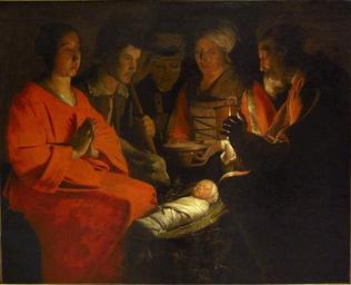| Keywords: L'adoration des bergers (La Tour).jpg Artwork creator Georges de La Tour fr L'adoration des bergers en The Adoration of the Shepherds ~ 1645 oil on canvas Size m 1 31 1 07 Museum Louvre Sully - 2 e étage - Le Sueur - Salle 24 000PE001639 object history credit line Acquis en 1926 accession number RF 2555 Sammyday 2010-10-23 PD-old-100 <gallery>File Georges de La Tour - Adoration of the Shepherds - WGA12348 jpg File Georges de La Tour 001 jpg</gallery> Uploaded with UploadWizard Taken with Canon PowerShot G10 The Adoration of the Shepherds by Georges de La Tour ImageNote 1 1282 1260 855 1085 4055 3287 2 200px ImageNoteEnd 1 |