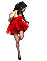 Keywords: lady elf red dress girl woman charming looking pose jump surprise emotion people person adult model female young 3d render