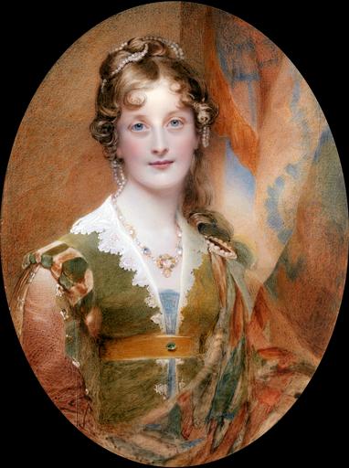 Keywords: Lady Ellenborough (Ross).jpg Artwork Creator William Charles Ross Jane Digby Lady Ellenborough 1807-1881 seated before an aperture and hanging drapery wearing India green dress with amber and green shoulder rolls her jewelled sleeves slashed to reveal amber her neckline edged with white lace teal underdress a burnt orange teal and sea green stole pinned at her left shoulder with a pearl brooch saffron jewelled sash sapphire and emerald pendant necklace her blonde hair partially curled and upswept dressed with strands of pearls century 19 Size cm 16 4 unknown object history credit line accession number http //www bonhams com/auctions/19943/lot/116/ Bonhams London 21 Nov 2012 lot 116 PD-old-100 William Charles Ross 19th-century portrait paintings location missing Jane Digby 18th-century portrait paintings not categorised by year F 19th-century oval portrait paintings of women at half length Images from Bonhams |