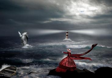 Keywords: lady in red forward sea clouds ocean storm rocky coast dramatic coast surf rock mystical lighthouse peter hofheinz