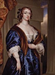Keywords: Lady Margaret Feilding, Duchess of Hamilton by Henry Pierce Bone after Anthony van Dyck.jpg Lady Margaret Feilding Duchess of Hamilton in blue silk décolleté dress with white lace collar and cuffs fur stole pearl bracelet two strings of pearl necklaces one with drop-pearl at corsage drop-pearl earrings further pearls worn with blue ribbon in upswept hair dressed in ringlets in left hand and draped over right arm standing in an interior with pillar curtain and sky background signed dated and fully inscribed on the counter-enamel 'Lady Mary Feilding Duchess of Hamilton London Novr 1839 Painted for J P Ord Esq by Henry Pierce Bone Enamel Painter to the Queen the Queen Dowager the Duchess of Kent From the Original by Vandyck in the Collection of the Earl of Denbigh Newnham Paddox Warwickshire ' enamel copper mm 215 170 Christie's online 5322269 creator Henry Pierce Bone after 1839-11 PD-art-100 Henry Pierce Bone Duchesses of Hamilton Fur scarves in art Female portraits by Anthony van Dyck Fur fashion in 1839