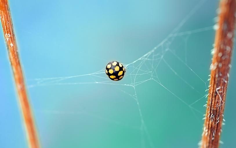 Keywords: ladybug beetle yellow points dry grassland-ladybug coccinula quatuordecimpustulata insect nature macro caught network cobweb branches