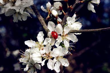 Keywords: ladybug insect beetle points schlehendorn flowers white flowers bush lucky charm nature spring