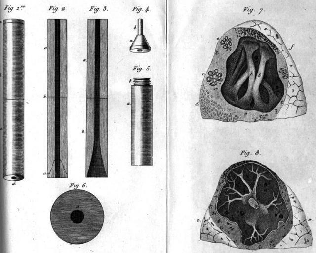 | Keywords: Laennec stethoscope lungs.jpg René Théophile Hyacinthe Laennec 1781-1825 De l ™auscultation médiate 1819 Historical Medical Books at the Claude Moore Health Sciences Library University of Virginia 2008-01 McLeod Reproduction of a painting that is in the public domain because of its age PD-Art Historic anatomical plates and drawings Lungs Stethoscopes in art |