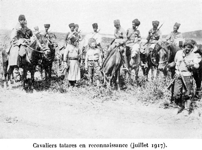Keywords: Laguerreenrussie.jpg en Сavalrymеn of Tatar Azerbaijani regiment in reconnaissance July 1917 ru Кавале исты Тата ского азе байджанского полка на азведке июль 1917 года 1922 La guerre en Russie et en Sibérie Grondijs Lodewijk Hermen other versions PD-old-70-1923 Russian military personnel of the Great War Azerbaijani people |