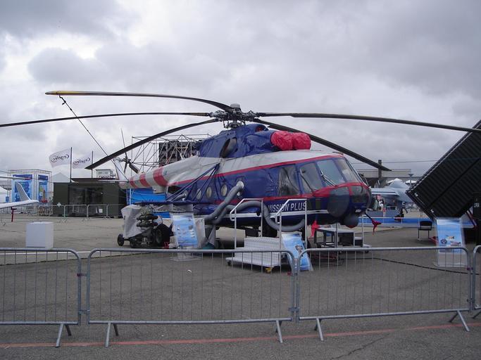 Keywords: LAHAT missiles mounted on helicopter.jpg Four LAHAT laser guided missiles mounted on a helicopter test platform at the 2007 Paris Air Show Own 2007-06-23 Wikibob Public Domain Le Bourget 2007 Mil Mi-17 Lahat missiles