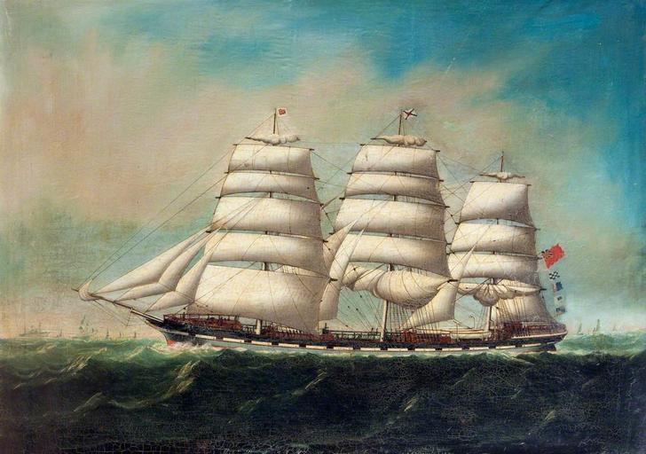 Keywords: Lai Fong - Allan Shaw.jpg Lai Fong Lai Fong of Calcutta born c 1865 1887 Technique oil canvas cm 62 88 North Lincolnshire Museums Service object history credit line gift from Mr A Brelsford 1966 accession number 1966 185 allan-shaw-80766 PD-old-100-1923 Lai Fong Allanshaw ship 1874 1887 paintings 19th-century sailing ships in paintings |