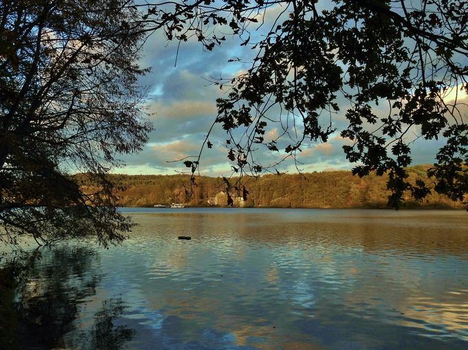 Keywords: lake autumn mood water trees atmosphere mirroring flakesee germany